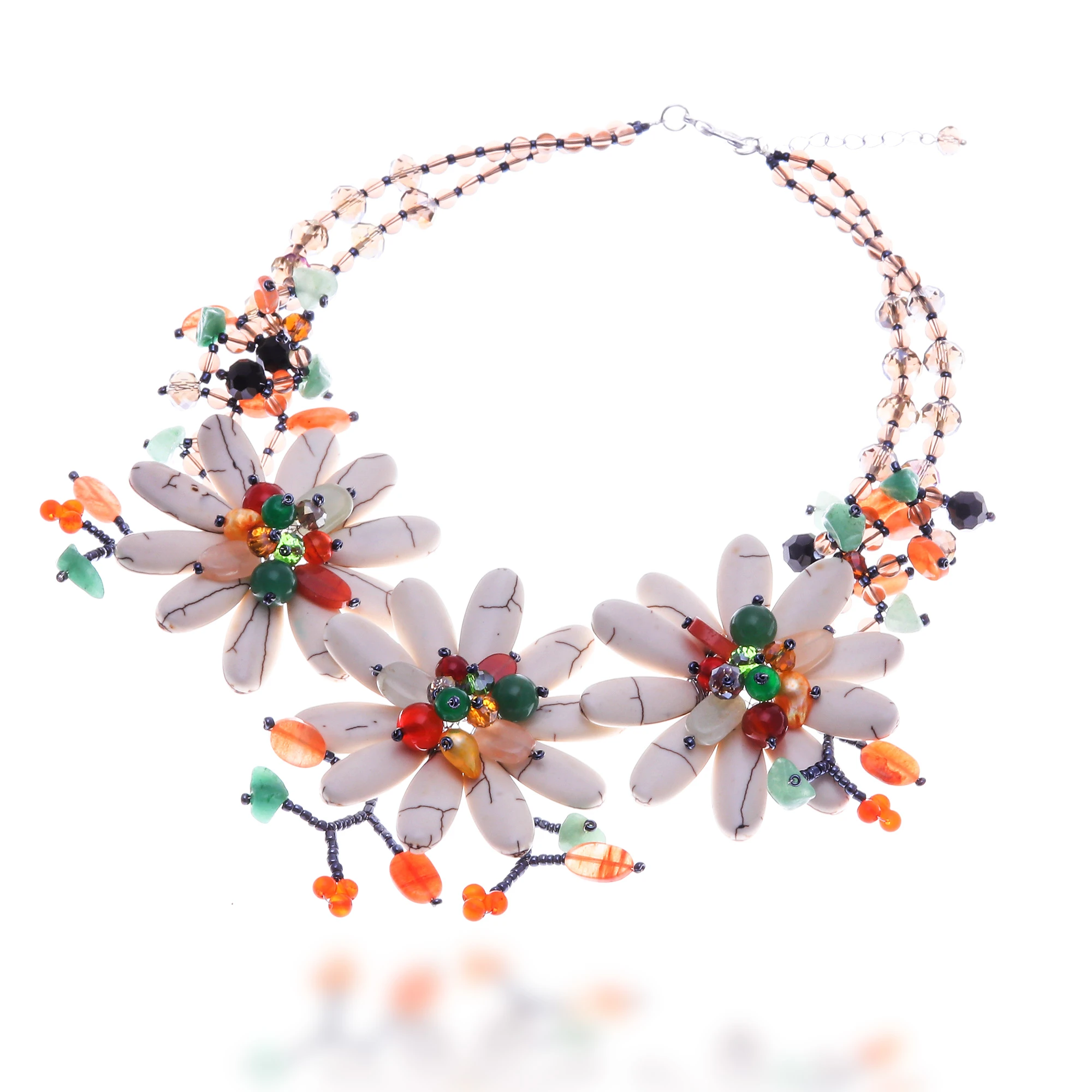 Multi-Gemstone Statement Necklace with Tropical Flower Theme, "Tropical Blooms"